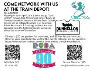 Step βback in timeβ with us at the historic Dunnellon Train Depot on April 28th at 5:30pmΒ for an evening of great food, local history, and meaningful connections.