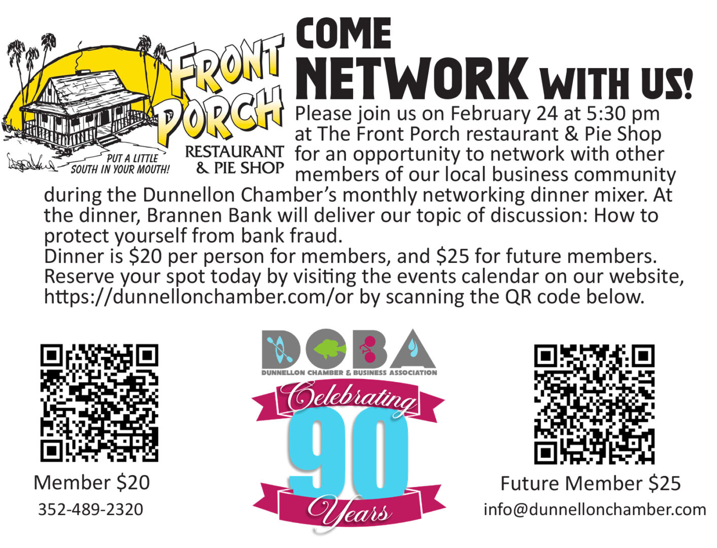 Join us for a fun time at our February Networking Dinner Mixer at The Front Porch Restaurant & Pie Shop in Dunnellon. Brannen Bank will deliver […]